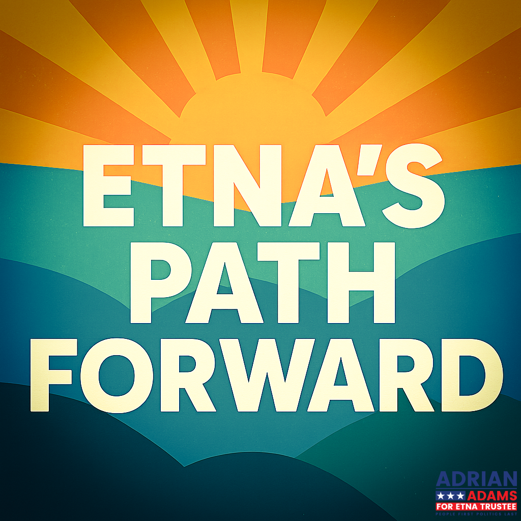For too long, residents have been told the right words but never shown the results. Etna’s Path Forward is different because every commitment has a clear action attached to it. If a leader can’t explain how they’ll deliver, then it’s just talk.