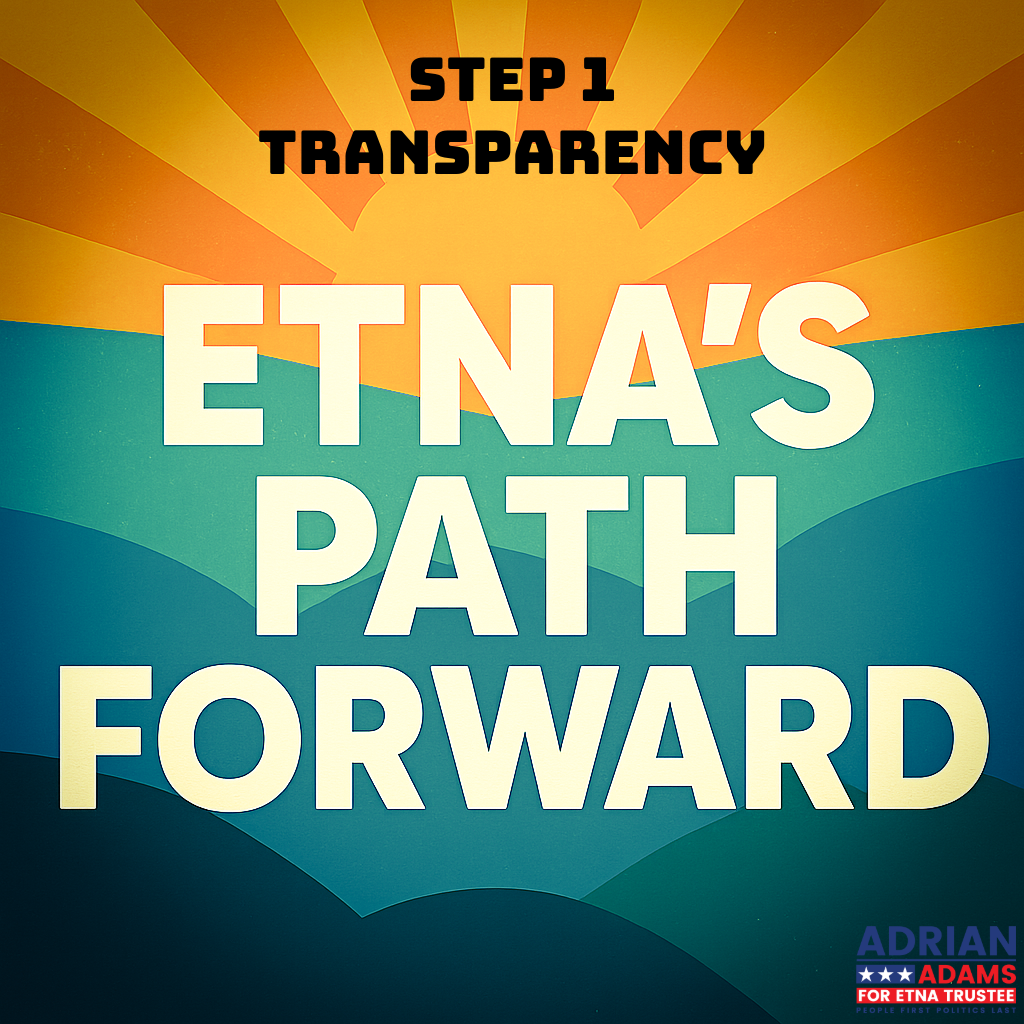 Progress in Etna can’t happen without trust. For too long, important financial details and development deals have been difficult sometimes impossible for residents to see. That lack of openness erodes confidence in leadership and leaves too many questions unanswered.